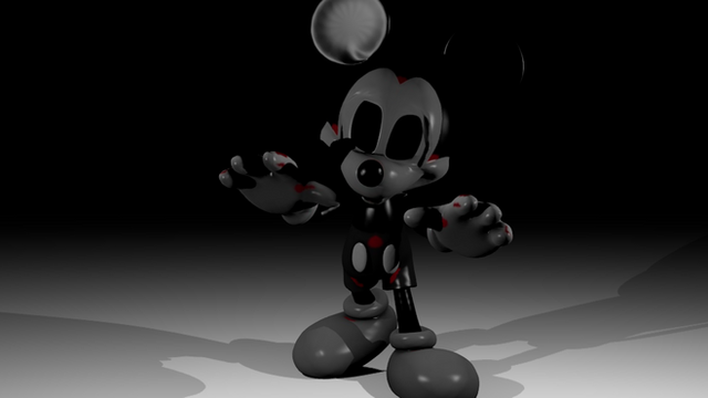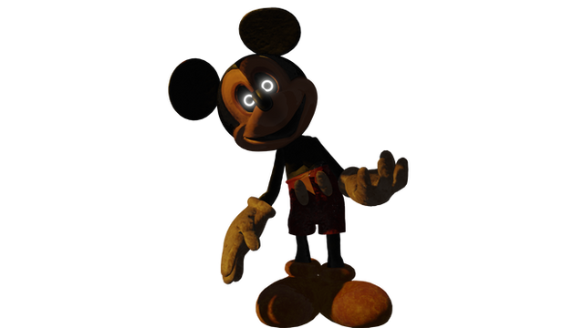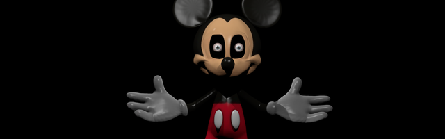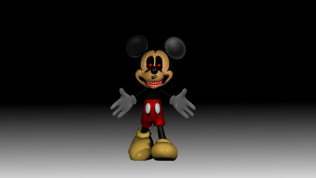 It more looks like Mickey took too much drugs, which caused his eyes to disappear, his eye sockets to expand, his face to indent, and his mouth to unhinge from his jaw