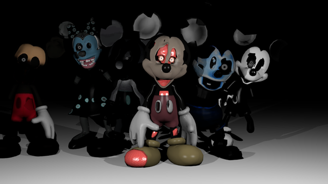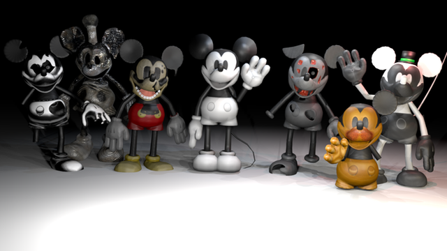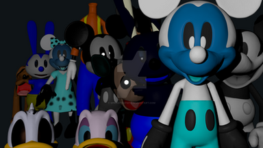 We have (left to right): Gimmick, Cartoon, Lost Ones Reference, Crazy Bastard, I am inside your walls, I am inside your wall's less edgy cousin, Mark, True Mickey, Evil Mickey, Body Mutilation, Bipolar Disorder, Daniel, Michael Theodore Mouse the IIIrd, The Cooler Daniel and WAY in the Back we have Drip MouseI'm working on things, but it's hard with life getting in the way
