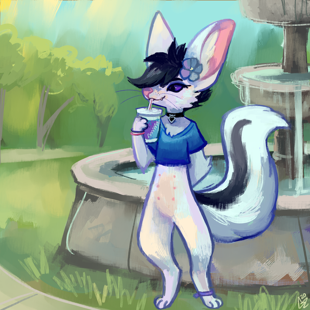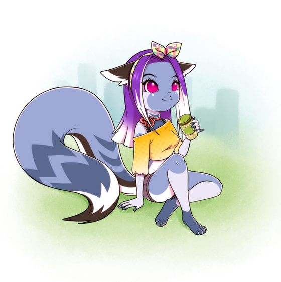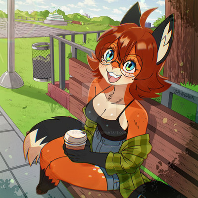 Callie relaxing in the park, drinking her mocha x3(i haven't drawn her in years)