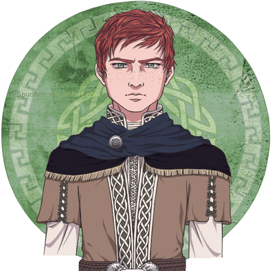 the medieval lettering/old page texture to the background adds to the epiness, and the close up protraits of the girl were good, both the ''front-close up'', and the '''side-face''. they were great.