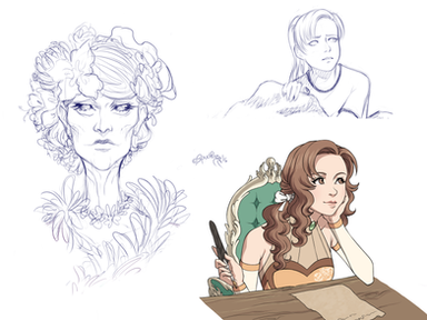 Honestly it's something I'm still learning as well. Following lots of fashion blogs (especially historical ones) on tumblr if you have one helps build up a sort of data bank in your imagination for basic design elements that you can frakenstein together to create something a little new (and or fantasy-ish). Then googling some fabric and textile patterns for ideas like "floral", "geometric", "celtic" helps put it all together.
