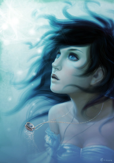 I love the background, the sea looks sparkly *-* The shading on her skin looks very good. Have you thought about giving the lineart a color too?o.o