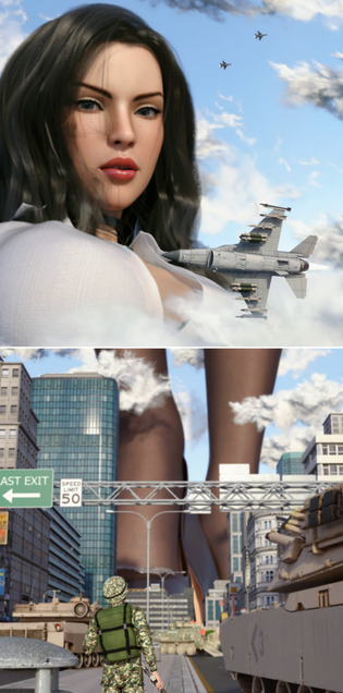 An Austrian Leopard 2A4 and an Italian C1 Ariete practice shooting positions on giantesses. The tanks are wedged firmly between the giantesses' buttocks, exposing only the turret and lowering their profiles. These exercises allow tank crews and giantesses to work together and build trust.Related content