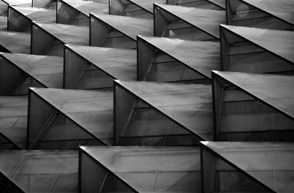 It couldn't be escalators, so I had to find it out. I Googled (Google Images) and there it was. Took me a few seconds to realize the blinds are lowered, or whatever. Great image, specially the camera angle.