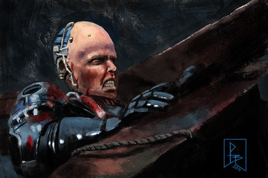 Nice work, as always, though the right hand looks a little bit unfinished to me. Canvas texture element is cool, and love the concept.