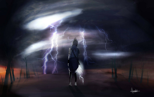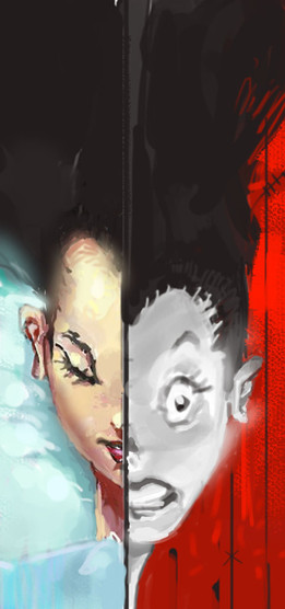 His hair swirling into nothingness really accentuates the foreboding mood. Great job!