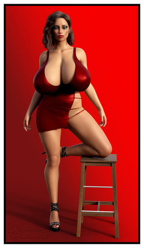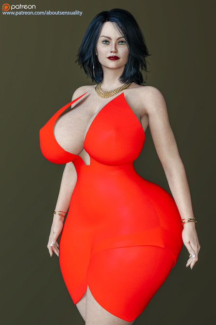 She looks great! That glossy dress is a great fit for her curvy figure and, I love her expression here