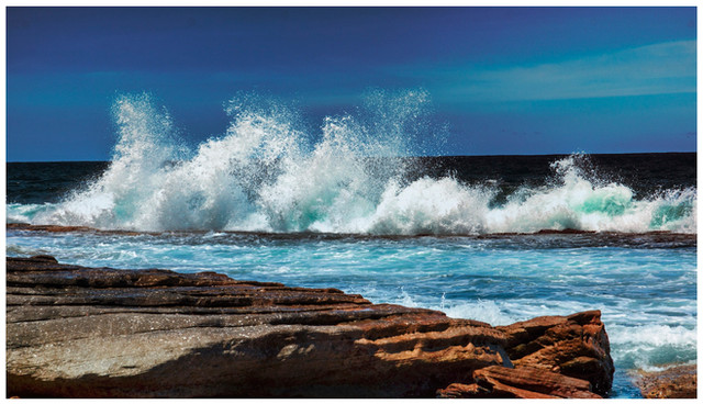 The Orange tones compliment the calming sensations conveyed from the blue ocean, and the fantasy aspect of the slow shutterspeed offers the blissful white cast mist over the rocks.
