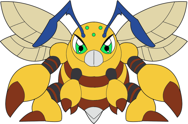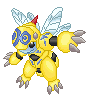 Perfil Oficial Un Digimon Insecto que pertenece a la misteriosa "base de miel aérea y encubierta, Base Real". Aunque su vida diaria difiere de la de otros Digimon Insecto, es un trabajador fuerte y dedicado debido a que su personalidad es muy alegre. Siempre se lleva bien con Digimon Planta como Palmon o Lilimon. Debido a que la base suele estar en construcción, tiene el deber de llevar a casa los datos que quedan en los campos de flores o vegetación, poco a poco, para utilizarlos como materia prima, lo que hace que sea clasificado como una especie Virus. Además, debido a que la base está defendida por poderosos Digimon, lo que hace imposible acercarse a ella, el objetivo de esa construcción es un misterio por el momento. Su movimiento especial consiste en disparar rápidamente pequeños aguijones dentados (Gear Stinger). Además, debido a que una gran multitud de sus camaradas son convocados cuando utiliza su "Llamada 88", en la que enrojece las antenas de su cabeza y contacta con sus aliados, lo más prudente sería simplemente huir.