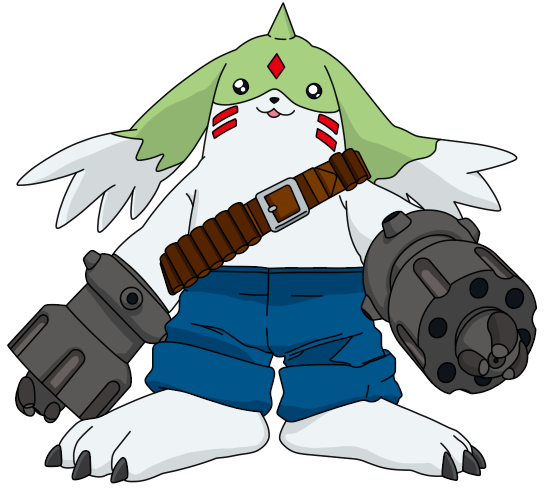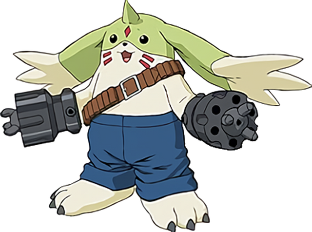 Rabbitmon/Bitmon (ビットモン) It is a Champion level Digimon in the Digimon: The Time Portal fanfic. Its design is based on a conventional rabbit. taking details from Cutemon and few features from conventional Rabbitmon armor. The concept is taken, just as it has been doing, from having a version of Lynxmon where all the elements that may come from Gatomon and Digiegg are removed, maintaining the patterns of the original digimon. Official Profile: An extinct Digimon that lived in the old digital world. His data was obtained thanks to the data of the friendship digiegg and the digimon Cutemon, who could be a descendant of this Rabbitmon. It is said that it became extinct due to its almost no attack or defense capacity, although its senses of sight, smell and hearing are more developed than other digimon, so they could serve as informant digimon, and its speed is greater than almost any other digimon of the same level. Like his future version of the Digigg, he has a very friendly personality and usually lets an enemy pass while remaining calm.