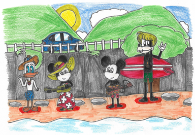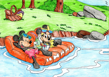 This image I got in my head to do a few days ago and it nagged me to do it. Here, Mickey and Minnie are lifeguards at the beach. They work together at the Beach Rescue station. Both are wearing red swimwear - Mickey, red trunks and Minnie, a red two-piece bikini - and they enjoy their job, as they get to work together and spend time at the beach. And as a bonus, they get to see each other in swimwear most of the day...I can just imagine Minnie wanting Mickey to practice mouth-to-mouth on her...