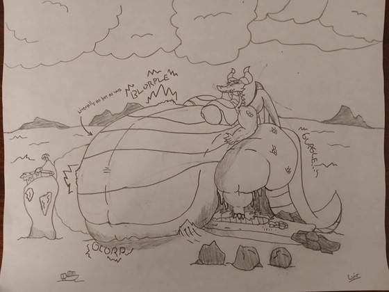 yeah I bet she would. I am betting she will drink all of the water or at least enough for to be the size of a huge boulder and roll off into the lake. what do you think will happen when she tries to drink from the water fall?