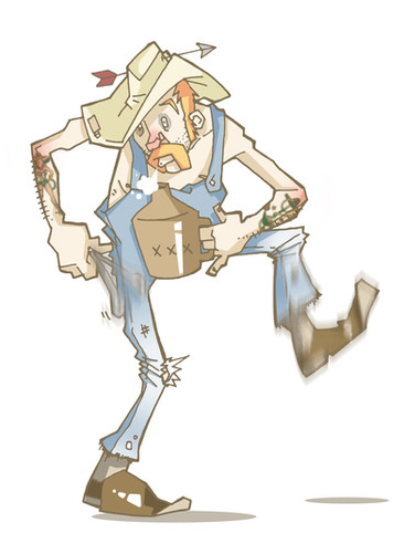 I love your touch... you have a strong bets there... the hat is wonderful, and i love how he stand up