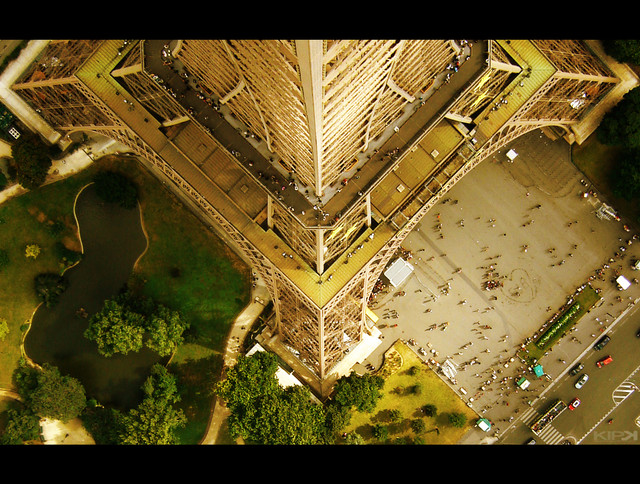 An interesting perspective of the eiffel tower. I held my camera through a hole in the fence, and pointed it downwards...had no idea what it was going to look likeThis is a re-submission to replace a particularily poor scan
