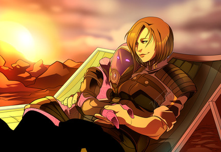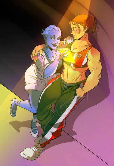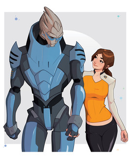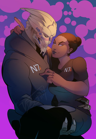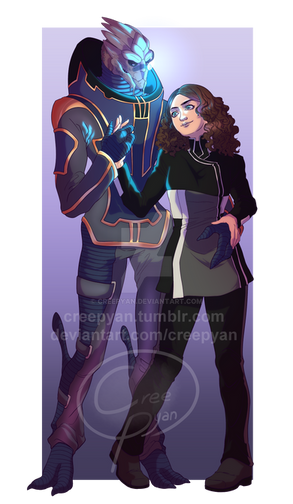 Drawing I've made for xenowriter of their femshep with Bray from #MassEffect . Ty again!
