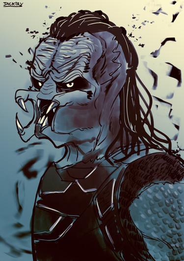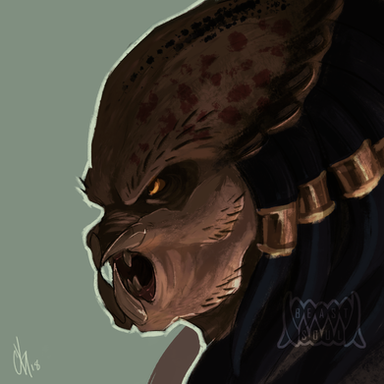 Drawing I made for nukeular of their yautja OC. Thank you so much for commissioning me!