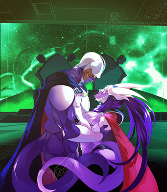 Drawing I made for nocturnalraptor of their Icejin OC with Dragonball Xenoverse Trunks! Thank you so much for commissioning me!