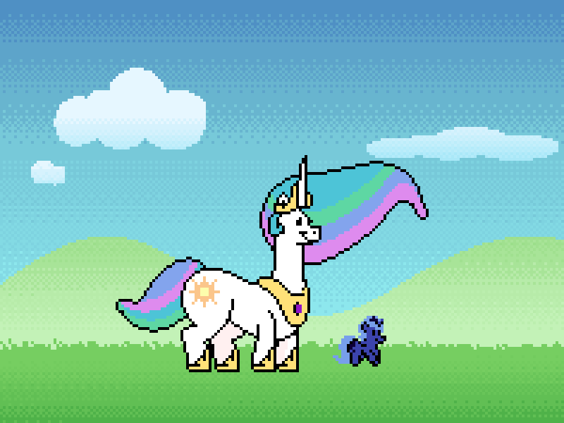 Hey everyone!As some of you may know, Cainiam (www.furaffinity.net/user/caini… ) and I collaborated on a small text adventure game late last year, about Princess Celestia trying to juggle ruling Equestria with not getting splattered beneath some huge backsides. Well the game still exists, and can still be found here: www.furaffinity.net/view/50116…