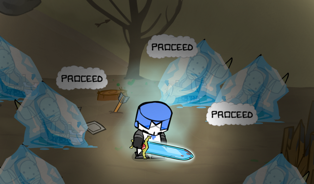A Castle Crasher solves a problem with his words.