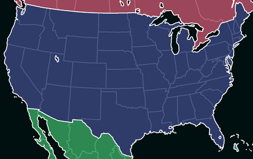 Labeled version of LNucleus's second alternate United States map. Credit goes to him, state names not the ones he originally intended for this map however.State names are: