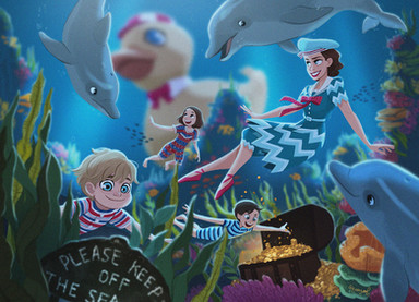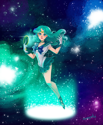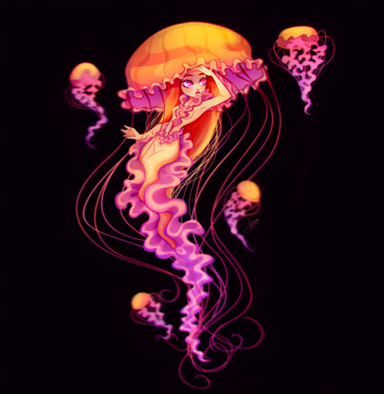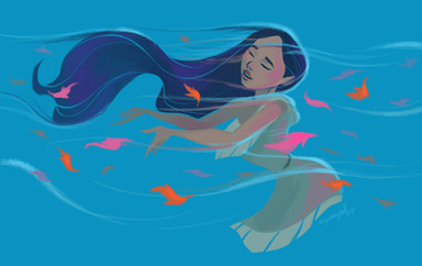 Simple, but so alive! She really pops. Background would be hard though, maybe a whirlpool? Or the inside of a wave?Β