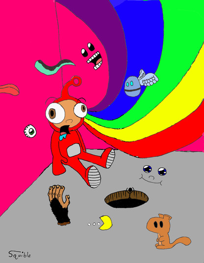 A drawing I've been working on in Photoshop, Original was in pencil, scanned, done over in blue, Inked in black, then go back and color inI like how it turned out