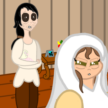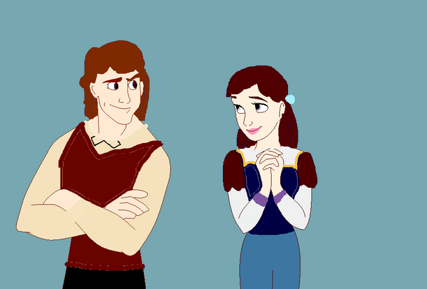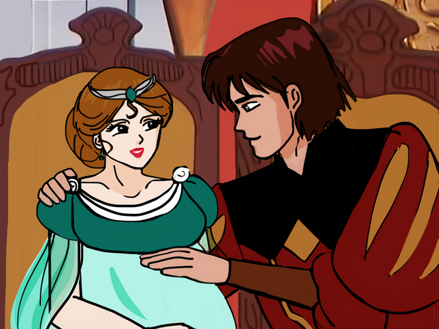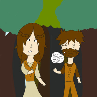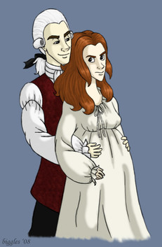 Art spam! I did some drawing at my Grandma and Grandad's, so I'm colouring them all now. Here's Annika and Pedro just when Annika has just 'disappeared' to hide the fact that she is expecting teh babbus. She and Pedro are worried they aren't going to pull this off. But they'll be fine. Juuuuust fine. Ha ha.My sister captioned this picture: