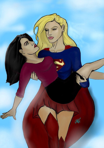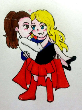 What's this - two fanart submissions in a row? How unlike me. Funny that both of them are ships between a blonde and a brunette that will probably never be canon but totally should be.Anyway, if you don't know who this is supposed to be, it's Supergirl/Kara Danvers and Lena Luthor. Yup, my sister's finally getting me into Supergirl. I haven't watched all the episodes yet but I love it