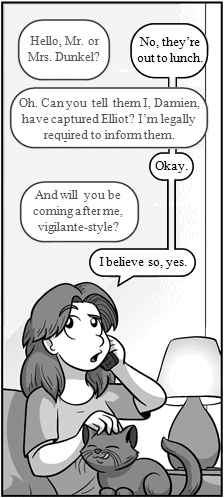 Part two of this comic based on a Tumblr post: chongoblog.tumblr.com/post/111…Sherilyn and Emma have turned up, as well as Mychal. It's the first time we've seen her in her school uniform. She's just been to class, which is why she's out and about rather than holed up in her room or the silent study rooms. Emma, for once, is the least potato one of all. 'Close, but not quite' is probably about 50% of everything Mychal has ever said to Sherilyn. Not annoying at all.