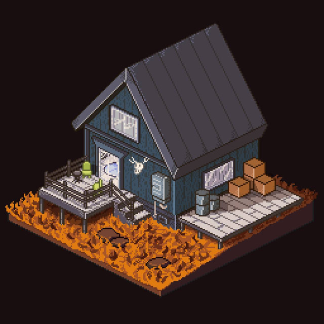 This is the traditional style of house in Queensland where I live. It's got a nice large veranda for watching lightning in the evening, and is raised off the ground to avoiding flooding in summer.This is another isomeric pixelart drawing, going again trying to find that balance between detail/noise and simplicity/flatness.