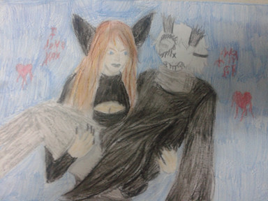 #anthro #carryinggirl #colored #furryfemale #licking #pencildrawing #pencilsketch #skull #tongue #original_character #caninecharacter #scp_fanart #scp_1471