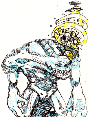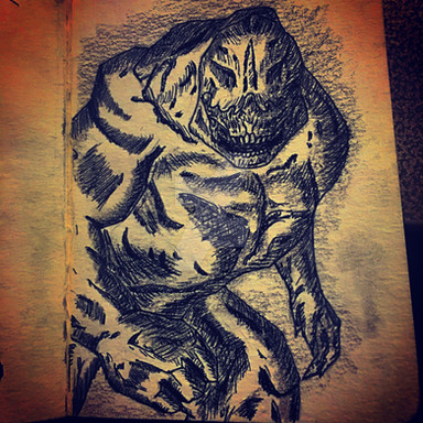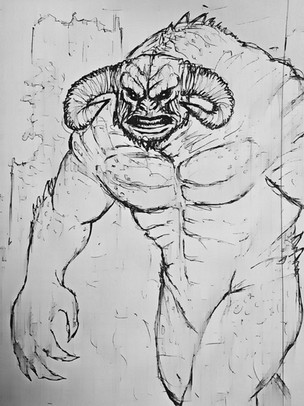 #traditionalart #characterconcept #demon #glowingeyes #gore #hooves #horns #redesign #sharpteeth #traditionaldrawing #glowing_effect