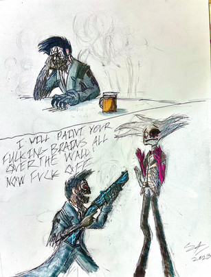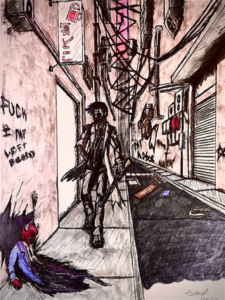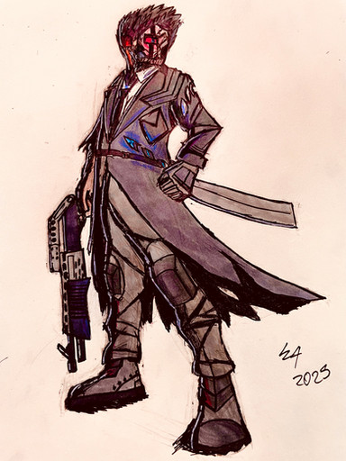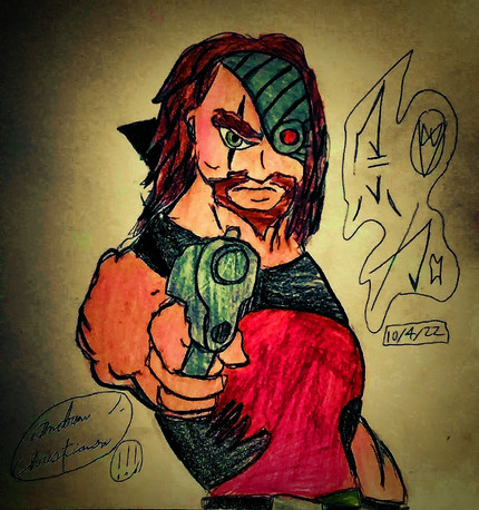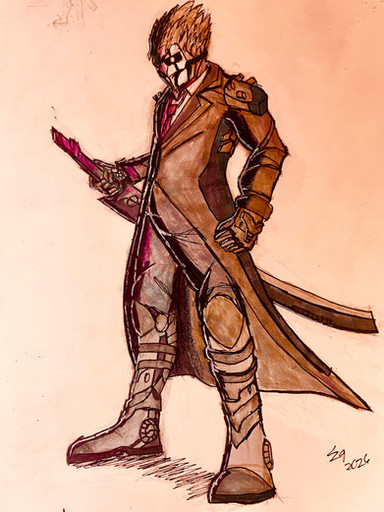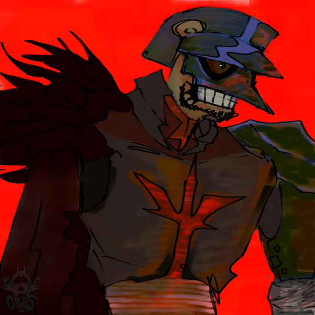 #originalcharacter #traditionalart #detailed #dynamicpose #mask #pistol #scar #soldier #trenchcoat #white_eyes #jojos_bizarre_adventure #pistol_design