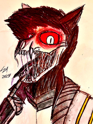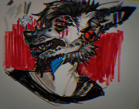 #screaming #silly #skull #soldier #traditionalart #original_character #red_eyes #furrycharacter #glowing_effect #sillylittleguy