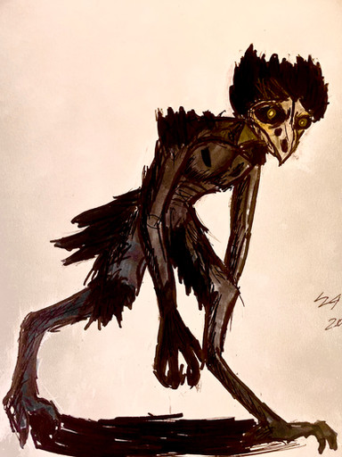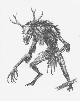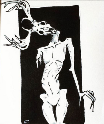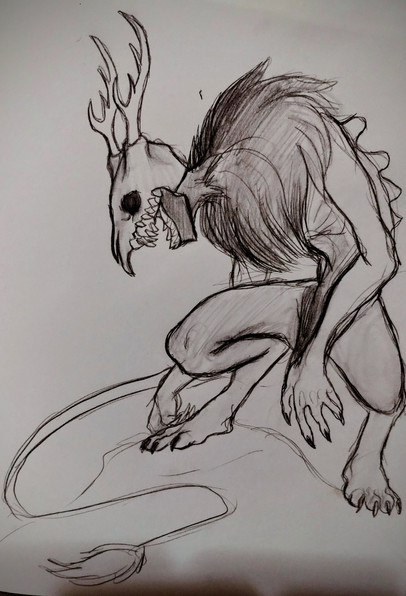 #skull #traditionalart #pencildrawing #claws #detailed #dynamicpose #horns #shading #skinny #traditionaldrawing #wendigo