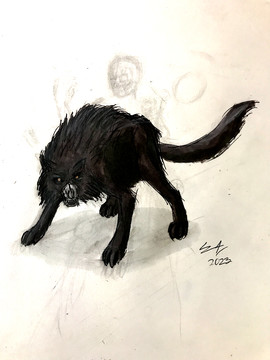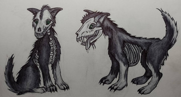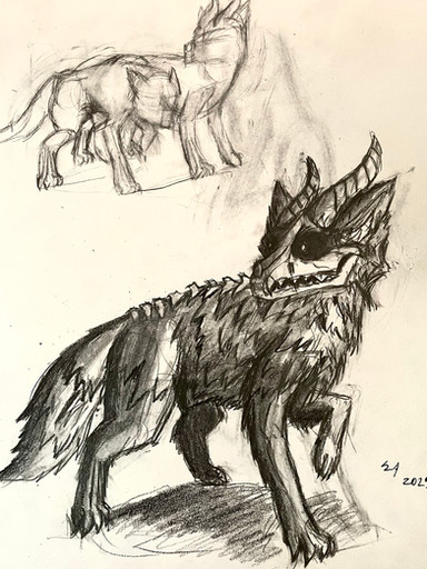 #traditionalart #colored #conceptart #creaturedesign #detailed #feral #glowingeyes #hellhound #horns #skull #traditionaldrawing #wolf #glowing_effect