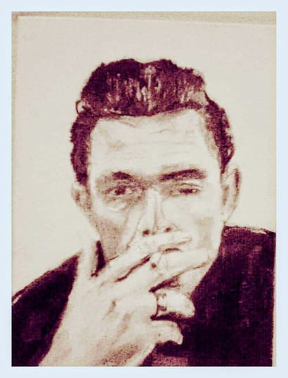 Johnny Cash portrait.Mixed media, watercolor and acrylic.
