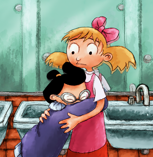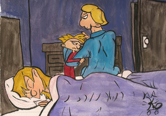 Graffiti I made for Craig Bartlett's facebook. Not really sure what's going on, but it seems like the kids have been out in the rain and are just coming inside.Helga seems to be comforting Arnold... Wonder what happened?