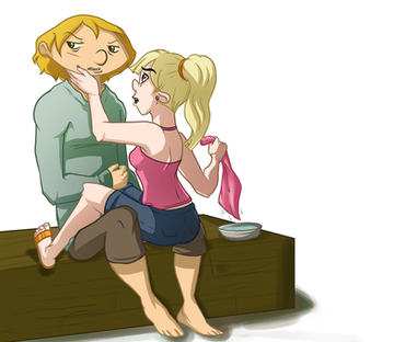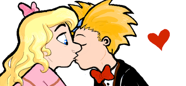 Now, what I'm getting here is the possible scenario of maybe Arnold finding out that his parents did indeed kick the bucket, so that could be why he seems sad. He could've been wandering around the city aimlessly, thinking about it all and just feeling miserable. Helga maybe is walking around to get a break, and maybe they're close to her house and she sees him there all sad. And leads to this part of the picture!