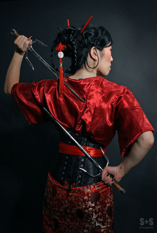 This photo plays on a samurai and fetish theme.Related content