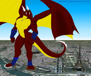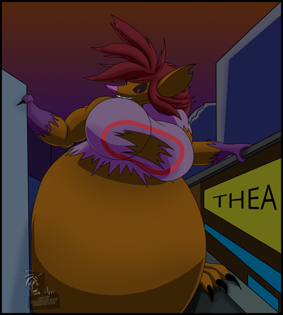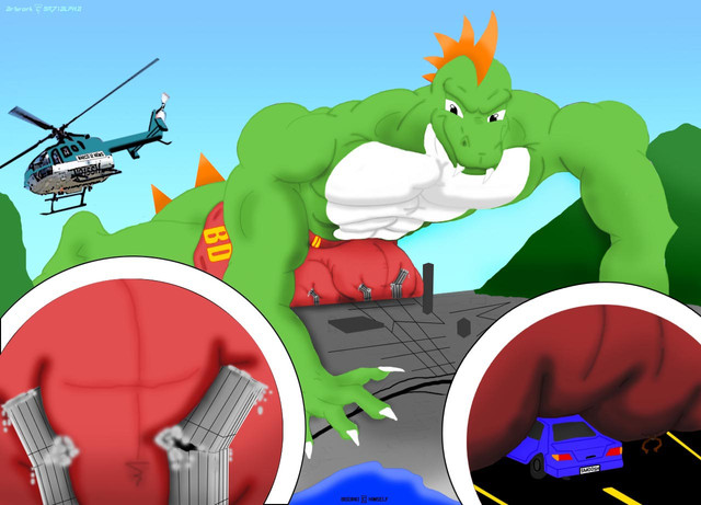 This is Tenis Yoshia an wingless Dragonian who just first shown her appearance on DA for the first time.What happened here Tenis just achieved Macro Growth on Dragas, by the "Pond O Growth" and then she found a Portal. Tenis put her upper chest in first and popped out on Earth somewhere in the streets of Berlin, her breasts were the first to touch down.