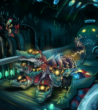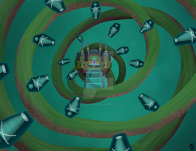 The Moon Pool is a frightful realm that can only be accessed from an ancient facility on the outskirts of Asteria's territory. The facility has been banned from entry to normal citizens for as long as anyone can remember and is said to be a noted area of activity during the Great War of Huana. To get the the Moon Pool within it's concrete walls, one must first journey deep into its chambers where they'll find the remains of an odd structure left to rot. The structure itself is shaped like an odd triangle that is completely filled by an odd purple liquid. Above the liquid floats the remains of a damaged orb that glows like a pitiful moon above it.Β