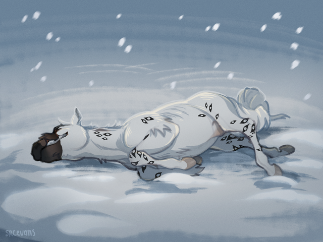 "Your herd managed to graze a little further than they normally do this year, and you find yourselves close to the mountains. One particularly chilly day, you notice the ground dusted in a layer of snow, which most of you have never seen before!"