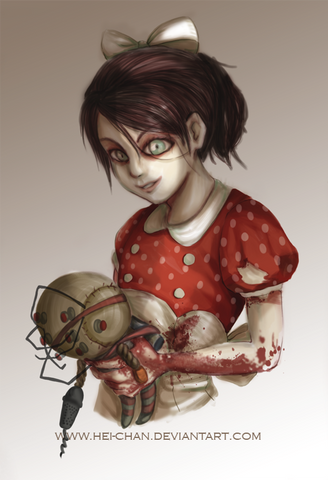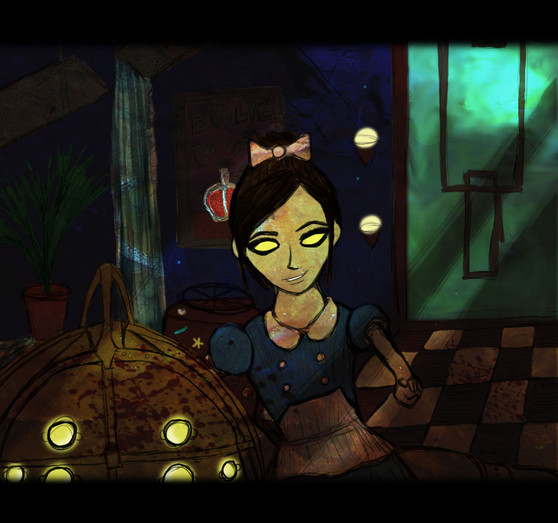 Okay! So, I entered 's Secret Valentine, and I got ! And I chose to draw the Little Sister giving a Big Daddy Doll a hug, from Bioshock! <3Now, I don't know ANYTHING about Bioshock, so this was a challenge, but I had fun doing it anyway XD