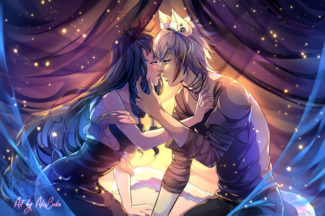 CALISTA AND RAMZI //// they're so cute ;///; i love them so much AHHH they're so cute...touches them...thank you again for drawing this for meee T__T you're the best and the sweetest and shoves you in my pants