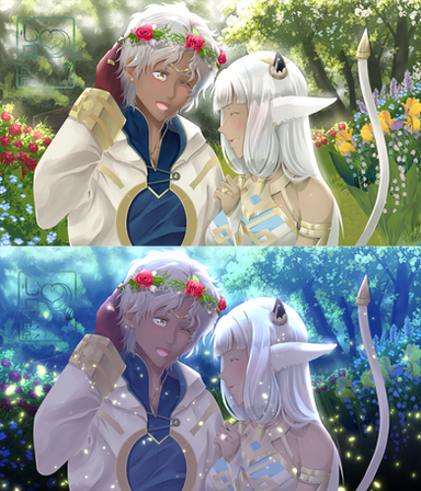 OURRR DREAMIESSS GSHGHDSF and you can see a konani and merek in the bg...THIS IS SERIOUSLY SO GORGEOUS T_T thank you again for making it /// i can't wait to do more with all of our charas ghhsd reaches for ur freedom..