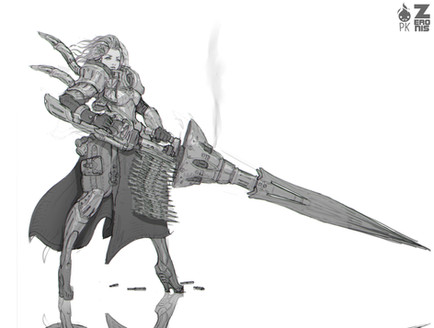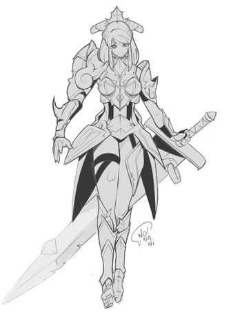 I really like the design of her armor with the claymore, even in sketch form. Nice.