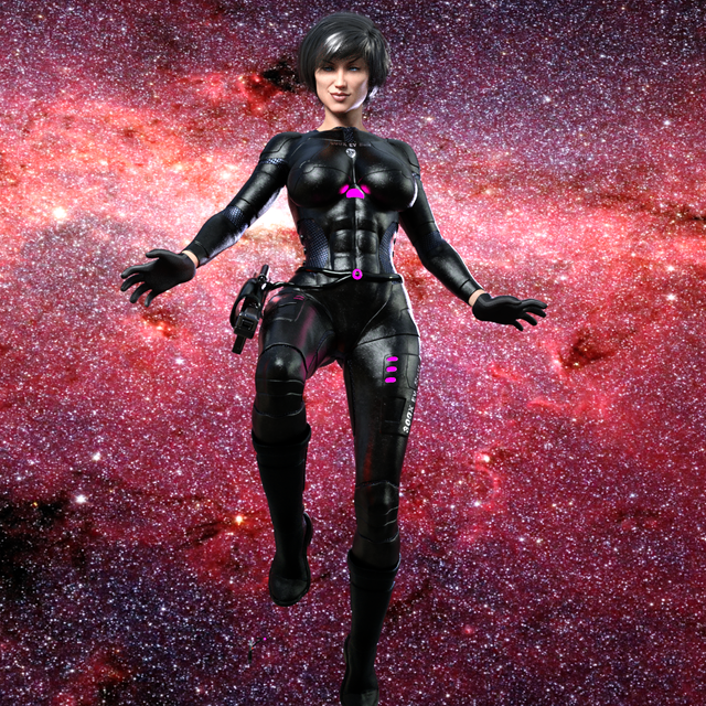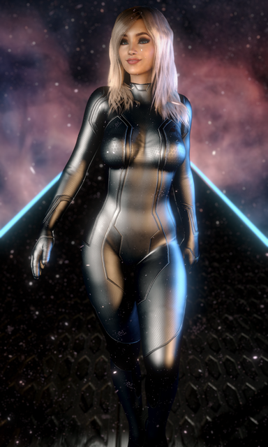 #scifi #render #digitalart #fanart #portrait #wallpaper #superheroine #effect #blondehair #space #sparkles #suite #shorthairgirl #boobsbreasts