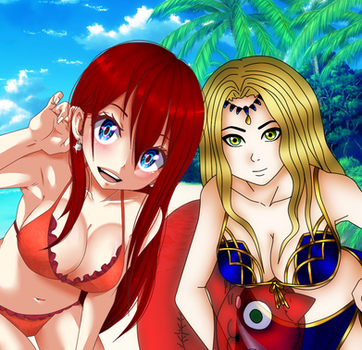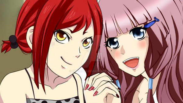 I have a friend called Anflame, he's a great friend of mine from Portugal, he uses a profile picture of Itsuki on some social networks, and he recently started making drawings.So he gave me the idea of the two of us making a drawing, each drawing a character. I drew Sayo, and Anflame drew Itsuki.