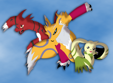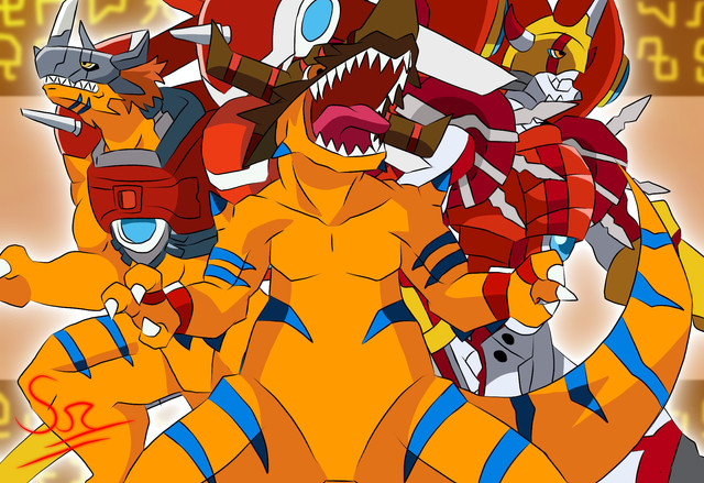 #digimon #fanart #anime #dinosaur #drawing #flower #greymon #lilac #mecha #trio #videogame #woman #digimonsavers #lilamon #machgaogamon #digital_art #rizegreymon #digital_monsters #digimon_data_squad